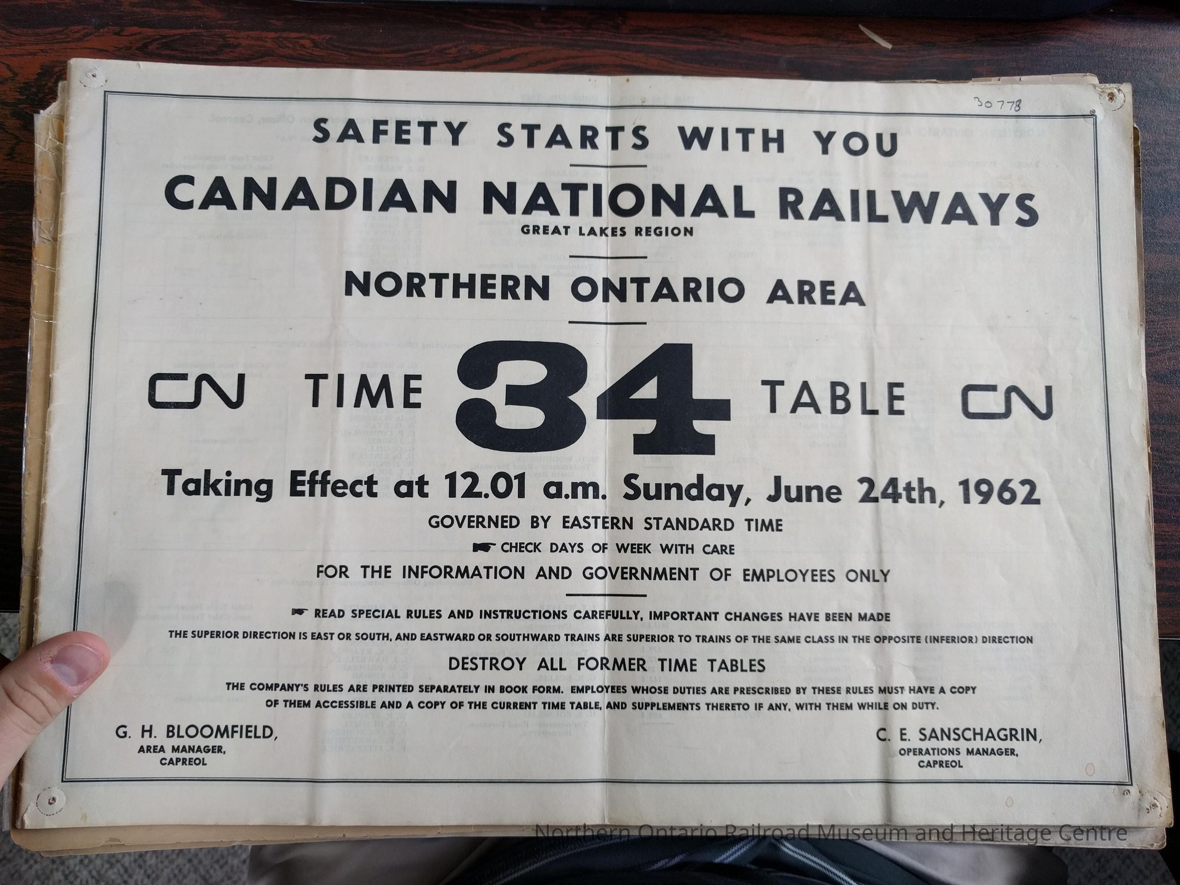 CNR Central Region Great Lakes Region Employee Timetable 34 (Effective 12:01am Sunday June 24th, 1962)Entry/Object ID