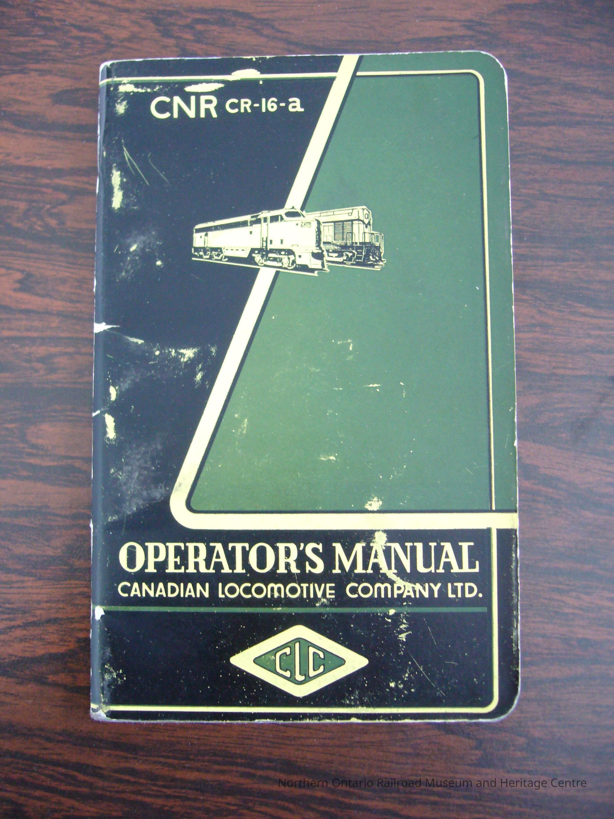 Booklet, provides concise information on the operation of the Westinghouse equipped CR-16-a class of diesel-electric all-purpose locomotives, built for the Canadian National Railways by the Canadian Locomotive Company, Limited. Includes: locomotive checks, diesel engine operations, locomotive operations, trouble shooting, general information.
