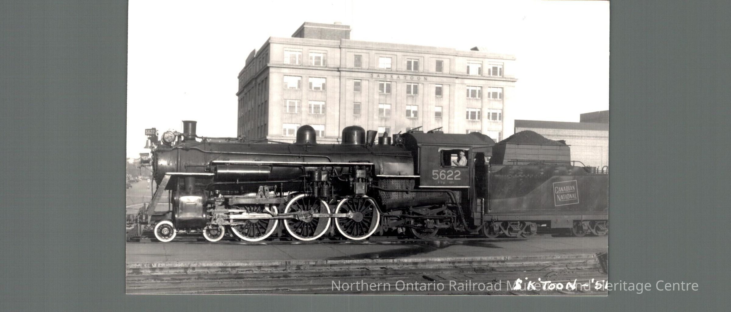 Photograph of CNR locomotive # 5622 in Saskatoon in 1951