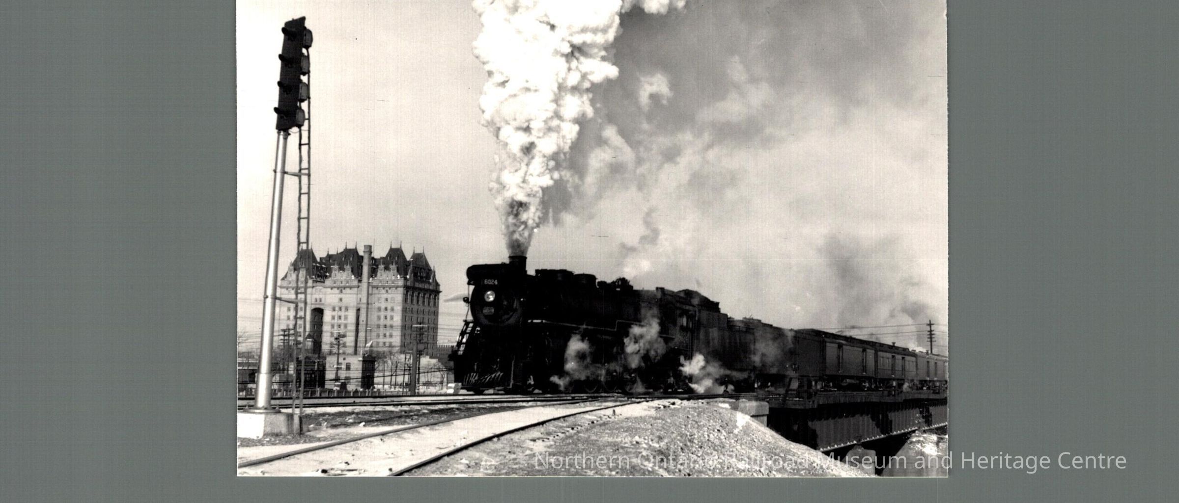Photograph of CNR locomotive # 6024 in Winnipeg, departing the continental in 1953.