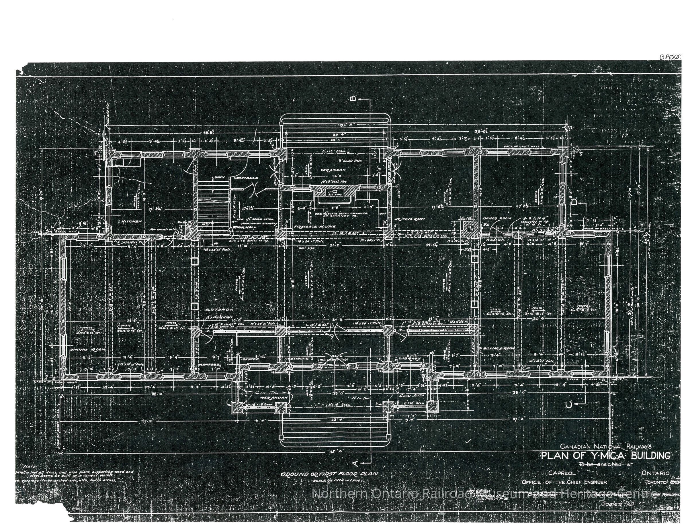 CNR Plan of YMCA Building (To Be Erected at Capreol, ON)Entry/Object ID