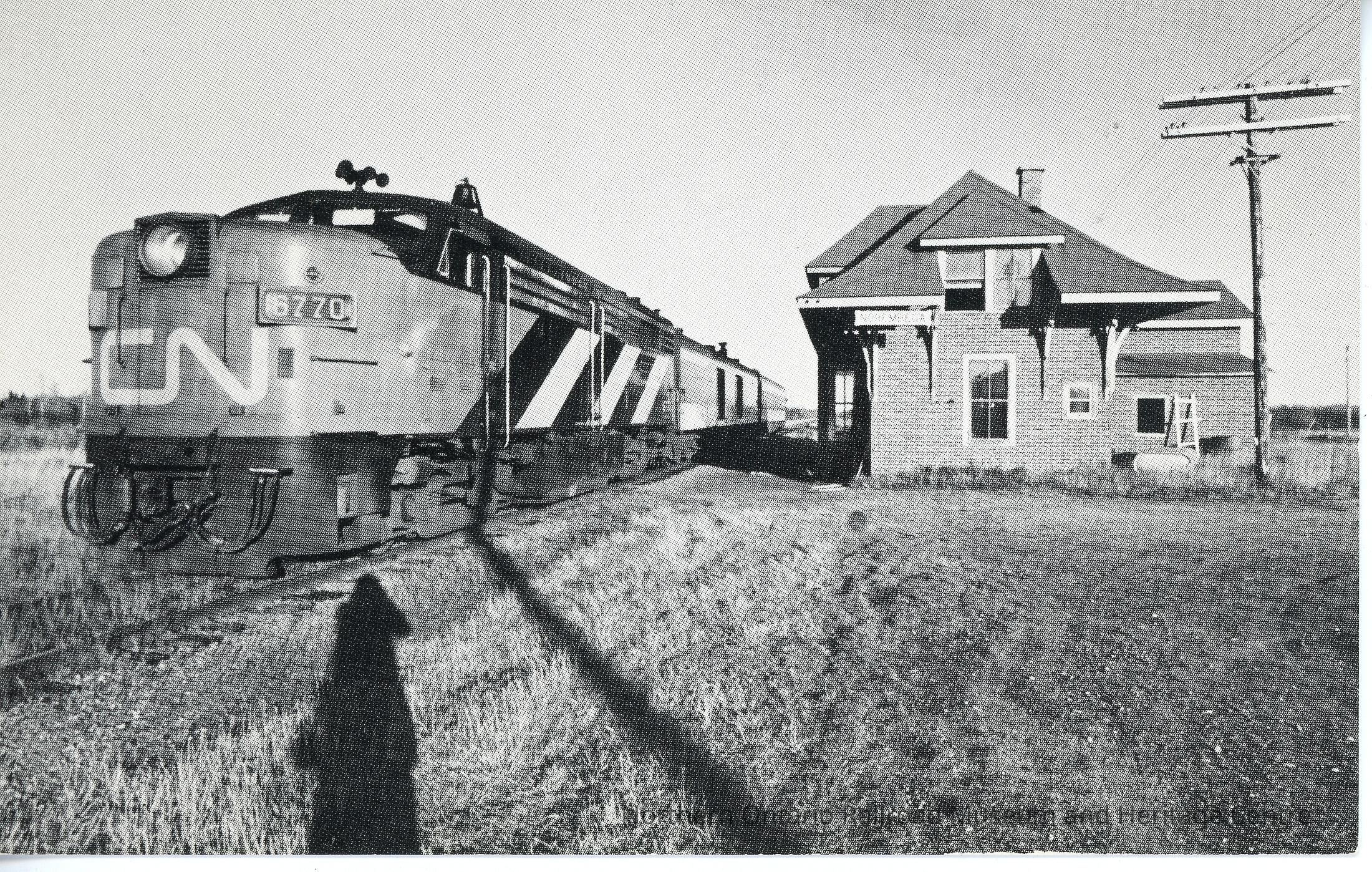 CNR Train #175 stopped at Norembega Station (ON), Oct. 1985Description