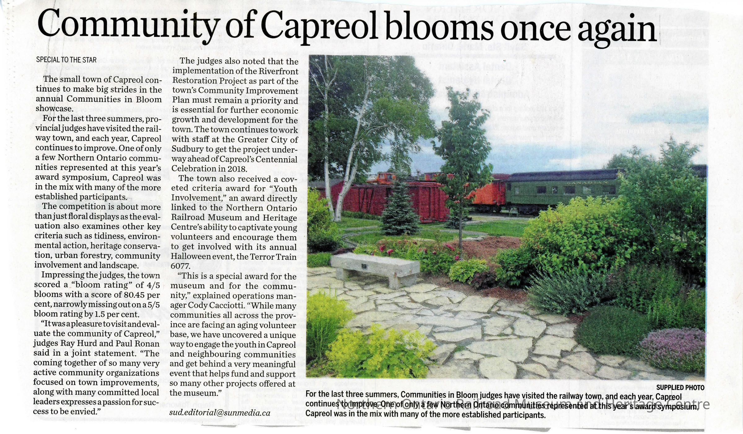 "Community of Capreol Blooms Once Again" in The Sudbury StarDescription