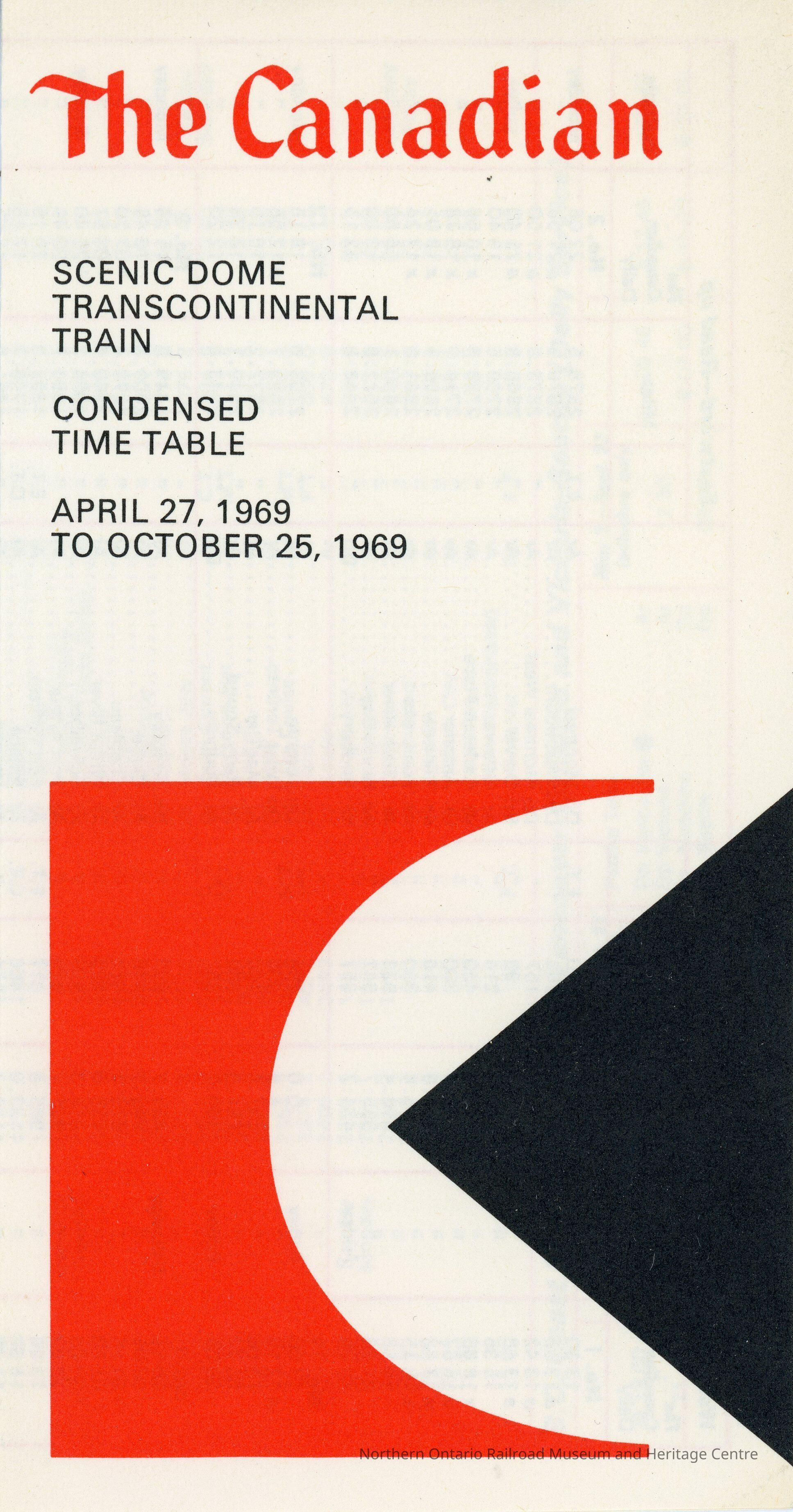 Condensed Timetable, CPR, The Canadian, April 27th 1969 to October 25th 1969.Collection