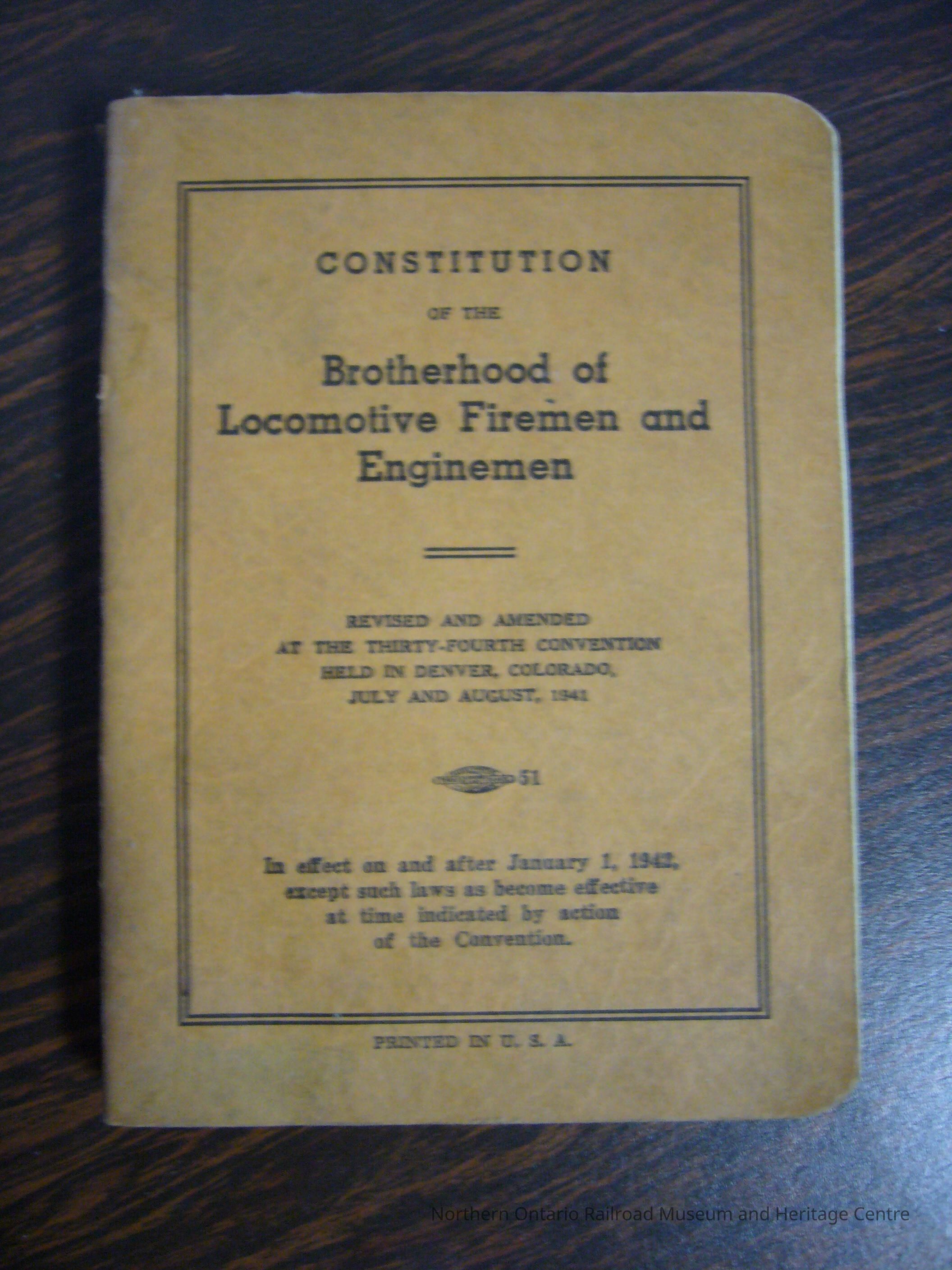 Constitution of the Brotherhood of Locomotive Firemen and EnginemenDescription
