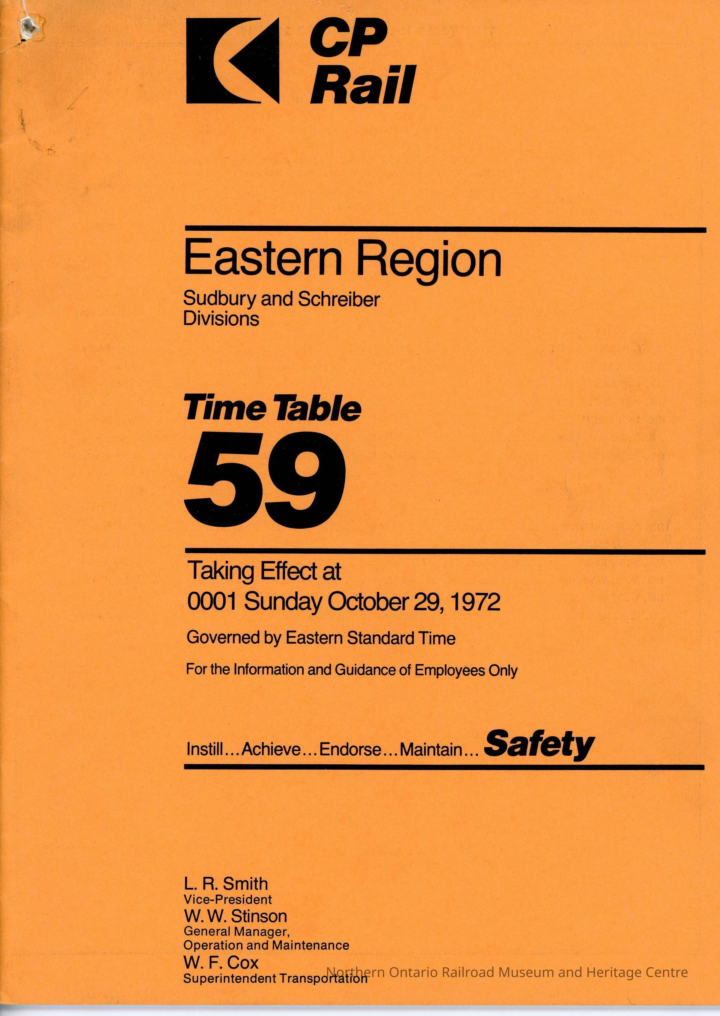 CP Rail Eastern Region (Sudbury and Schreiber) Timetable 59 for October 29 1972, effective 0001 EDSTDescription