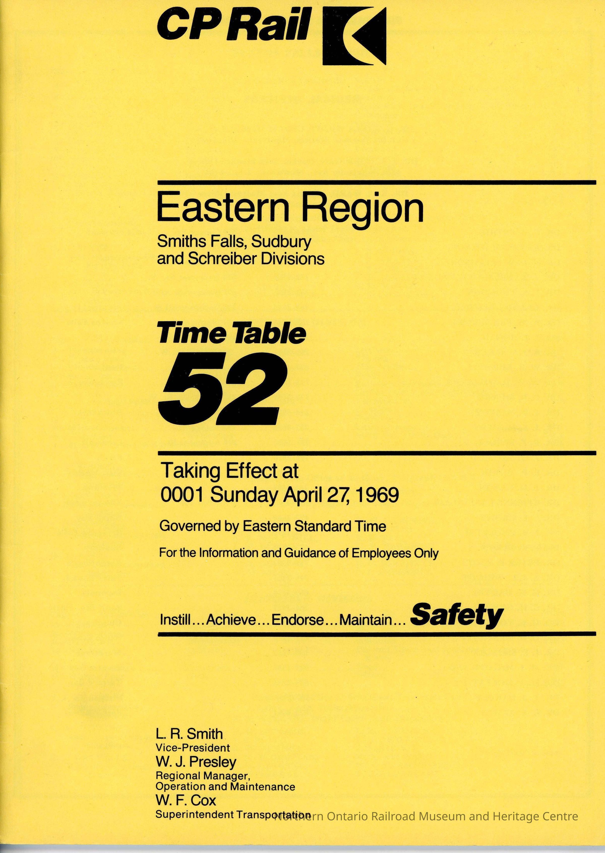 CP Rail Eastern Region (Sudbury, Smith Falls and Schreiber) Timetable 52 for April 27 1969, effective 0001 ESTEntry/Object ID