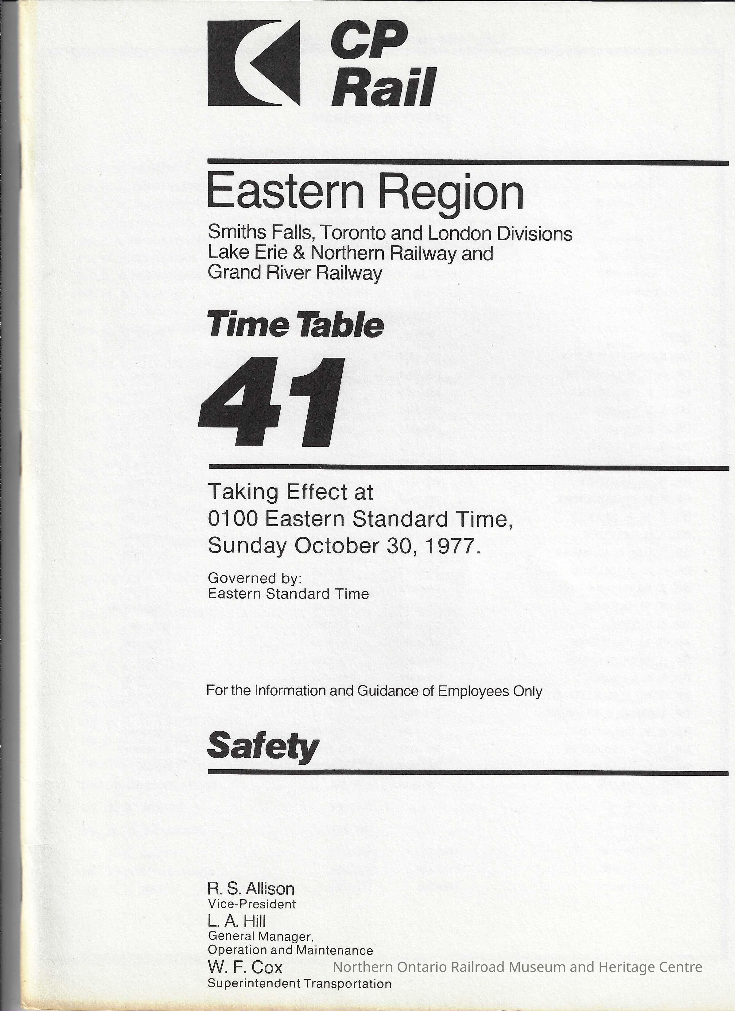 CP Rail - Eastern Region Time Table 41Entry/Object ID