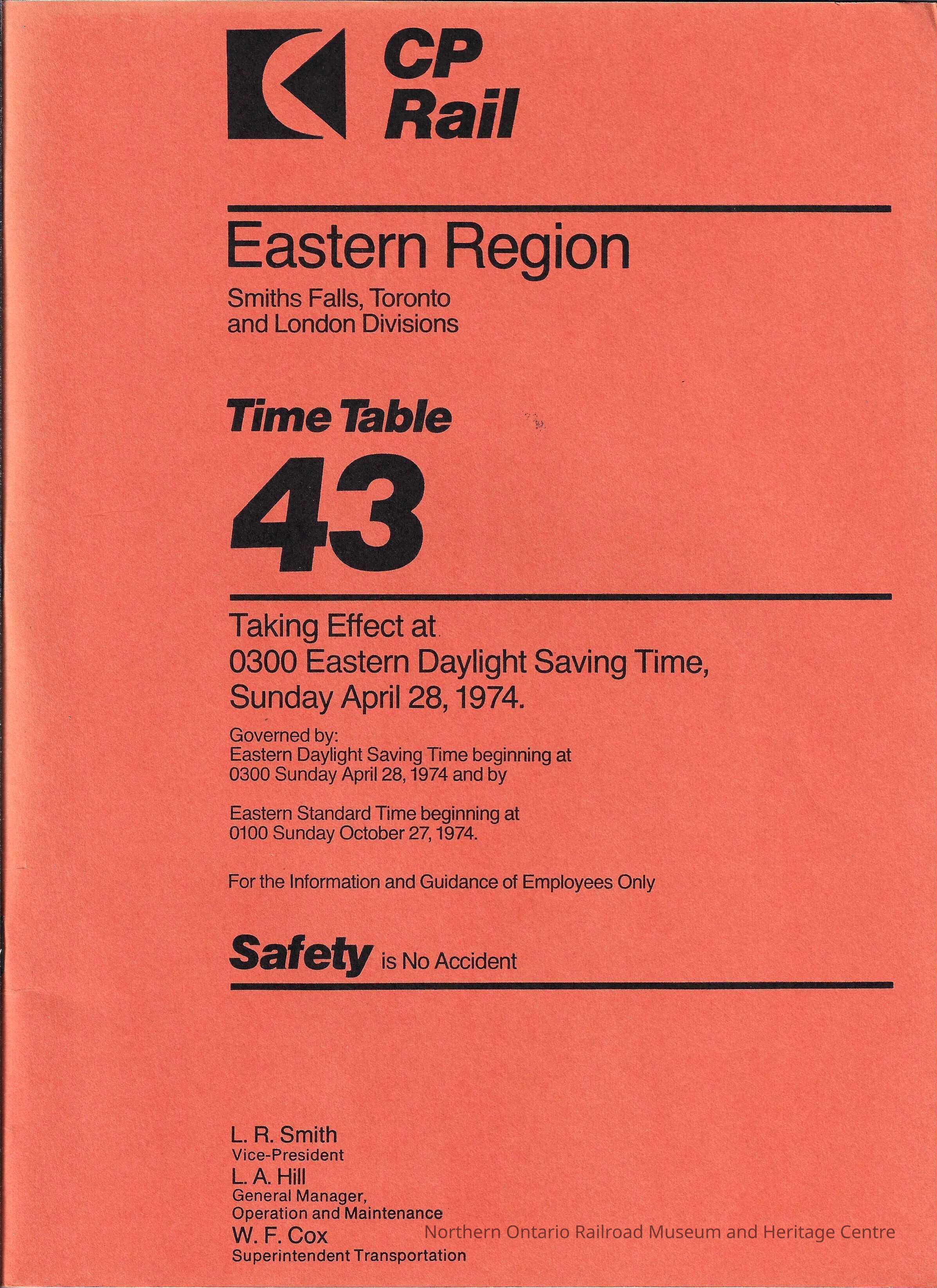 CP Rail - Eastern Region Time Table 43Entry/Object ID