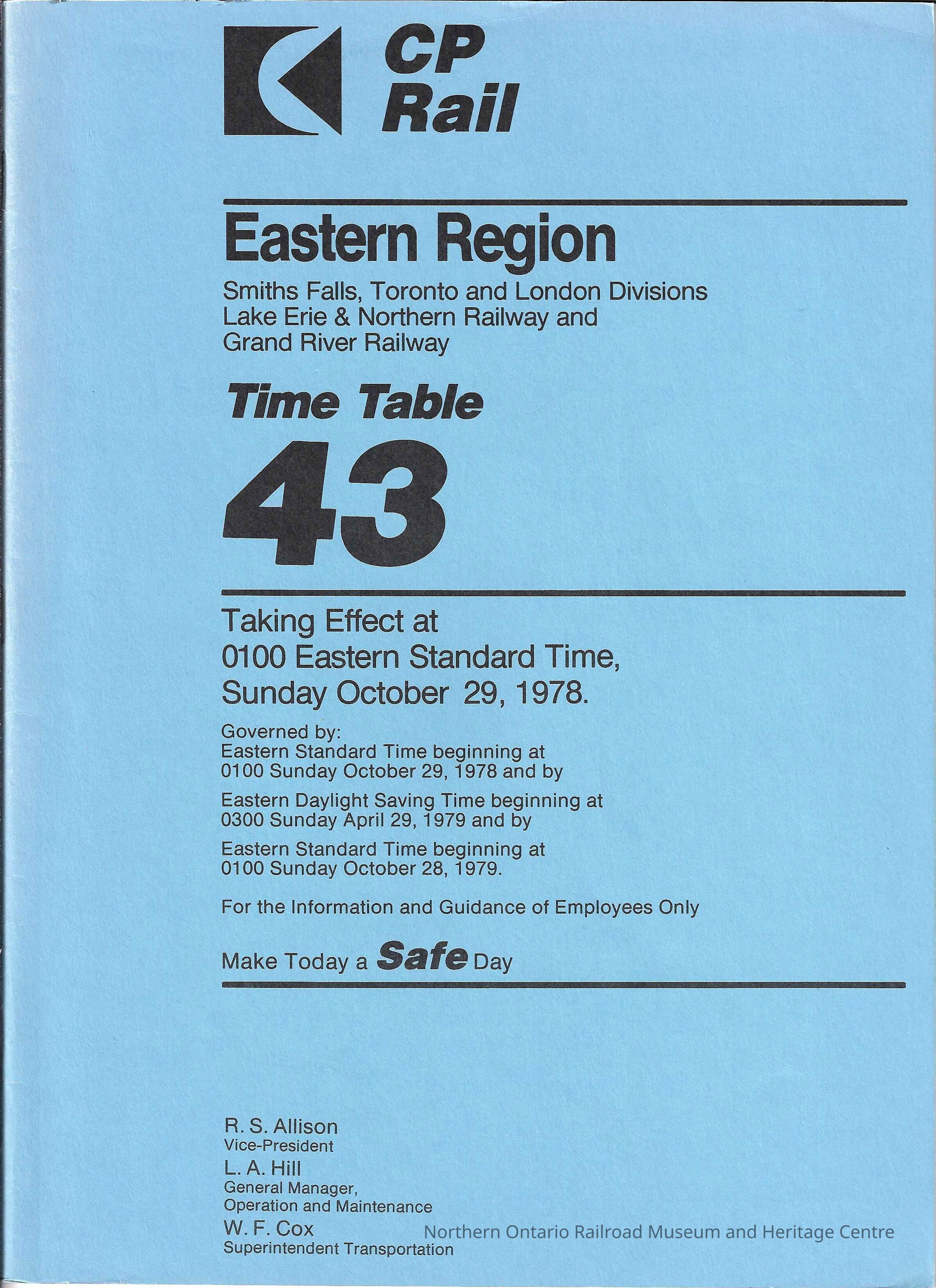 CP Rail - Eastern Region Time Table 43Entry/Object ID