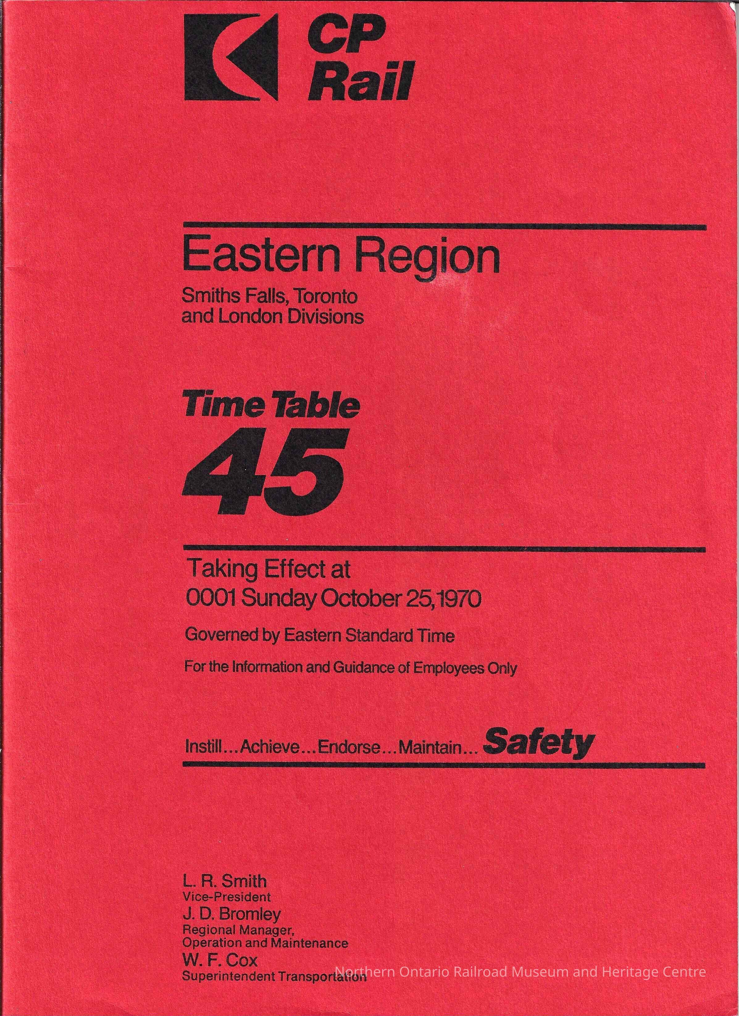 CP Rail - Eastern Region Time Table 45Entry/Object ID
