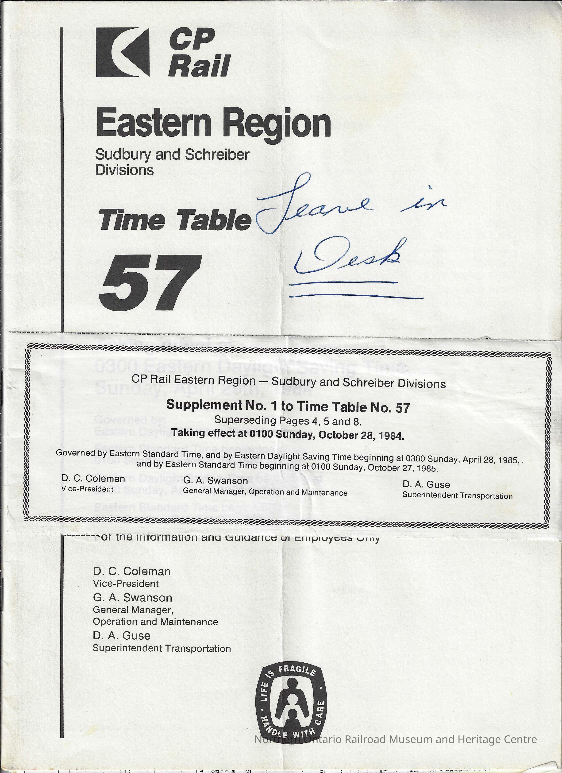 CP Rail - Eastern Region Time Table 57Entry/Object ID