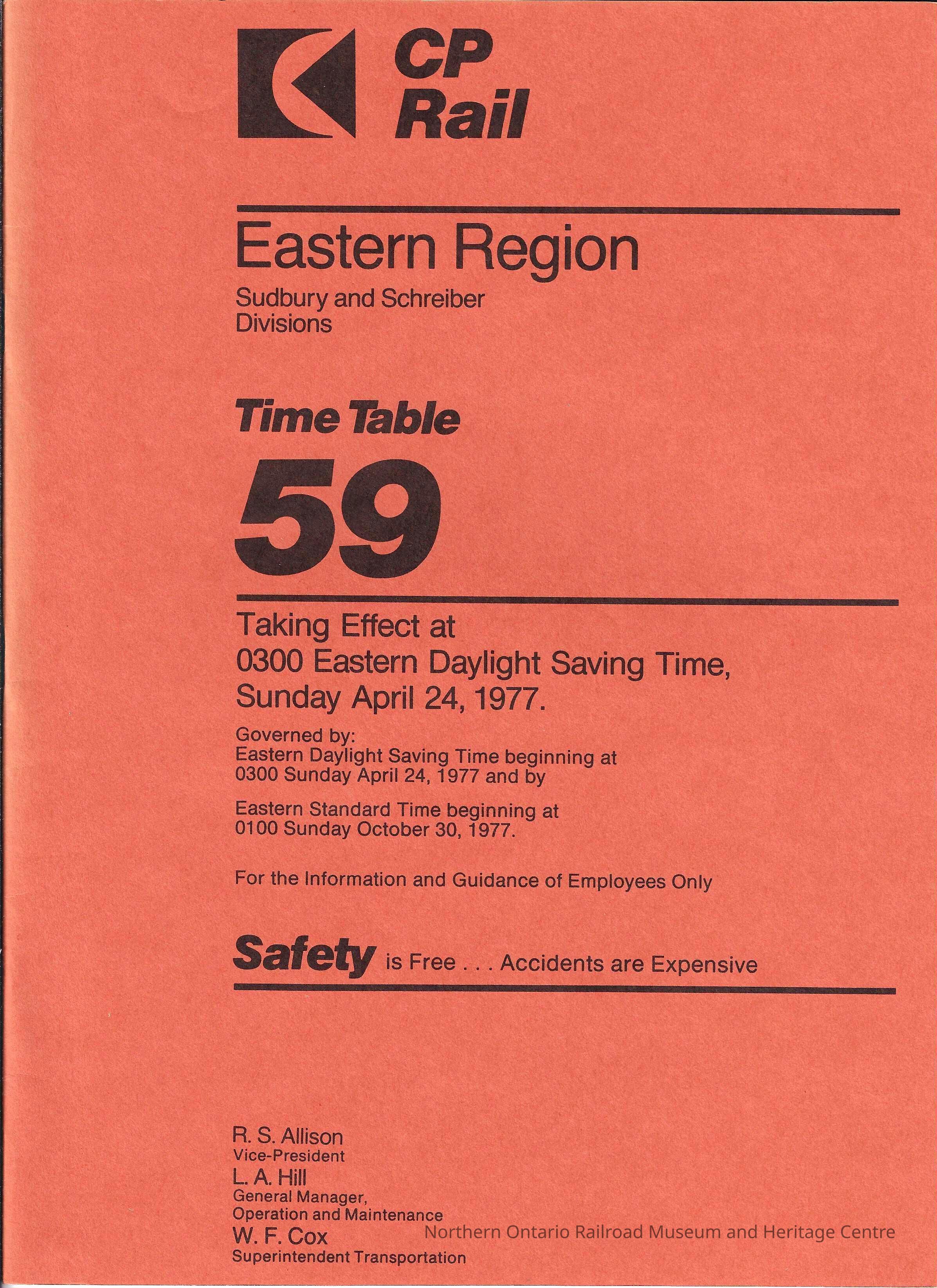 CP Rail - Eastern Region Time Table 59Entry/Object ID