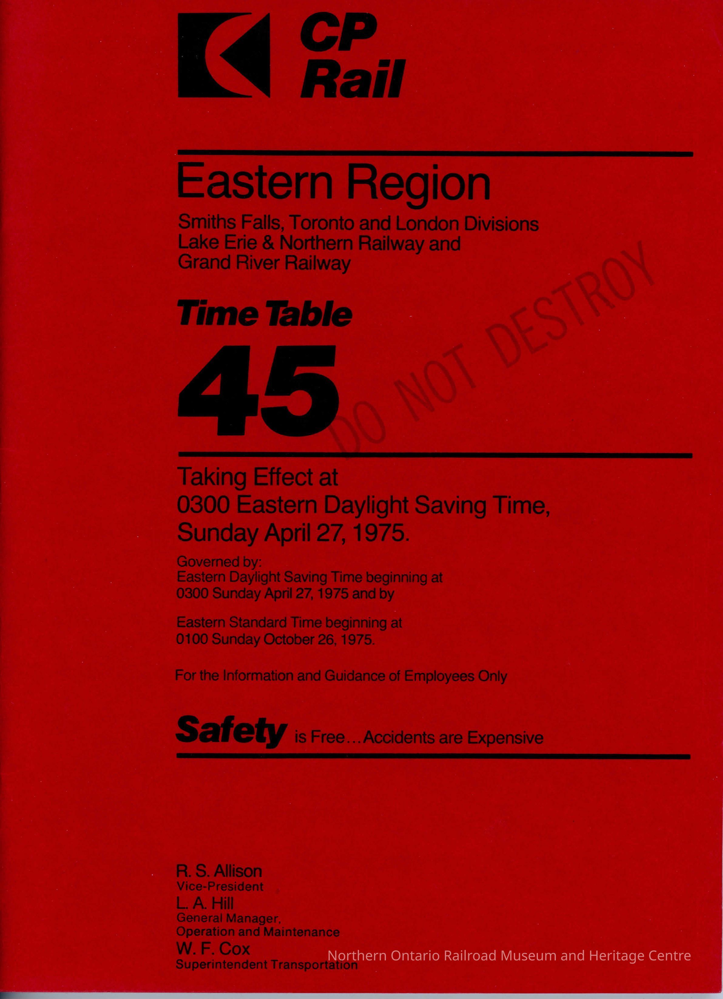 CP Rail Eastern Region Timetable 45 for April 27 1975, effective 0300 EDSTEntry/Object ID