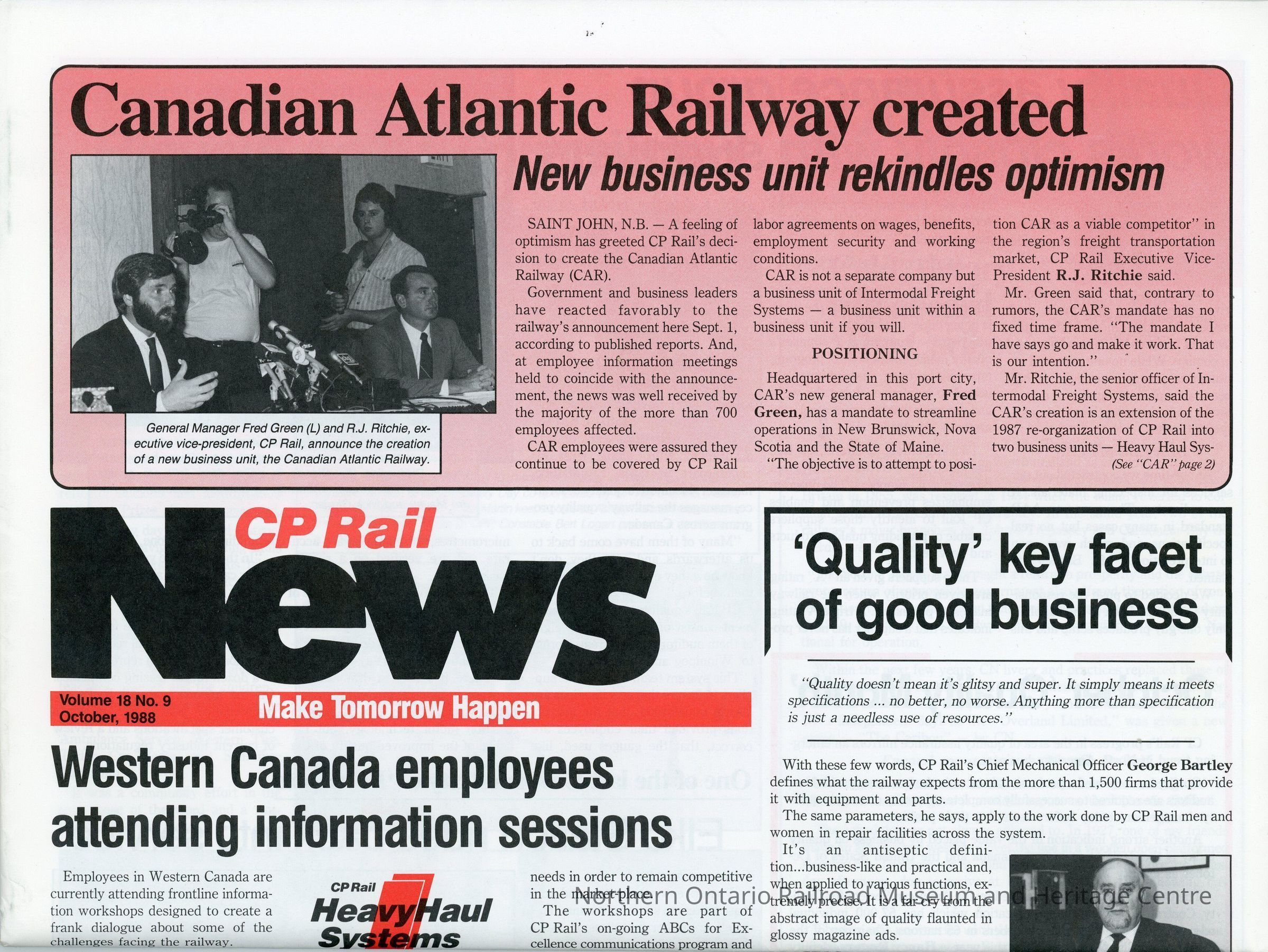 CP Rail News, "Canadian Atlantic Railway created"Collection