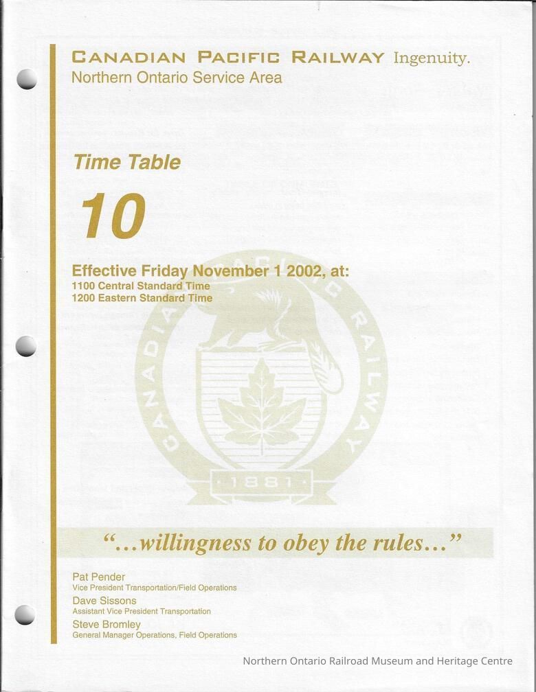 CP Rail Northern Ontario Service Area Timetable 10Entry/Object ID