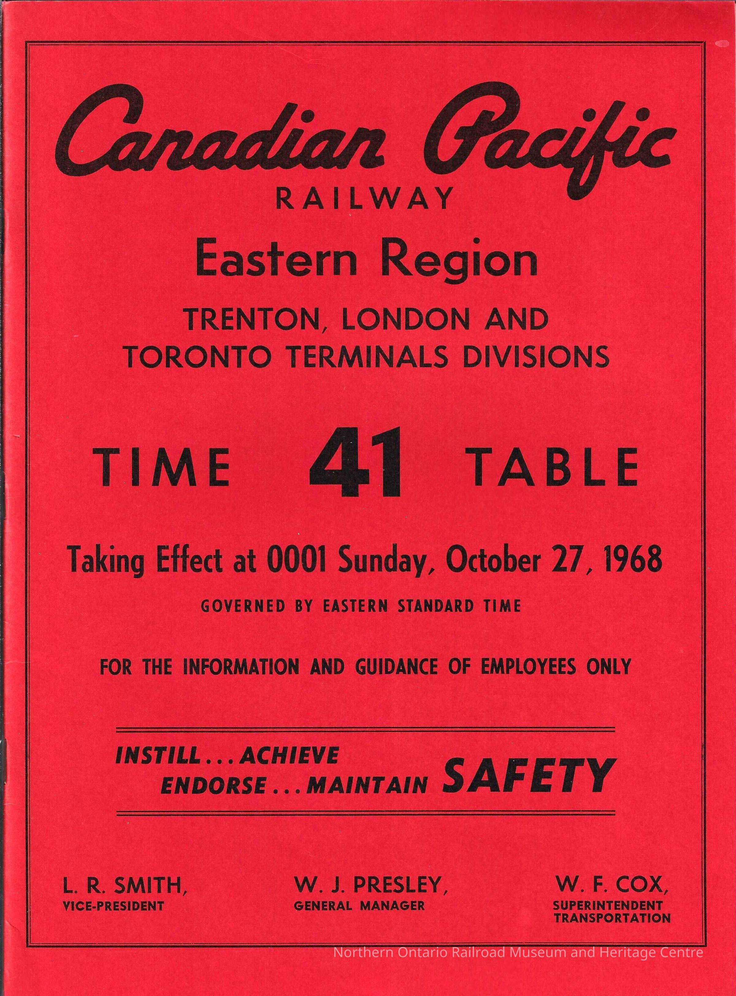 CP Railway Eastern Region - Time Table 41Entry/Object ID