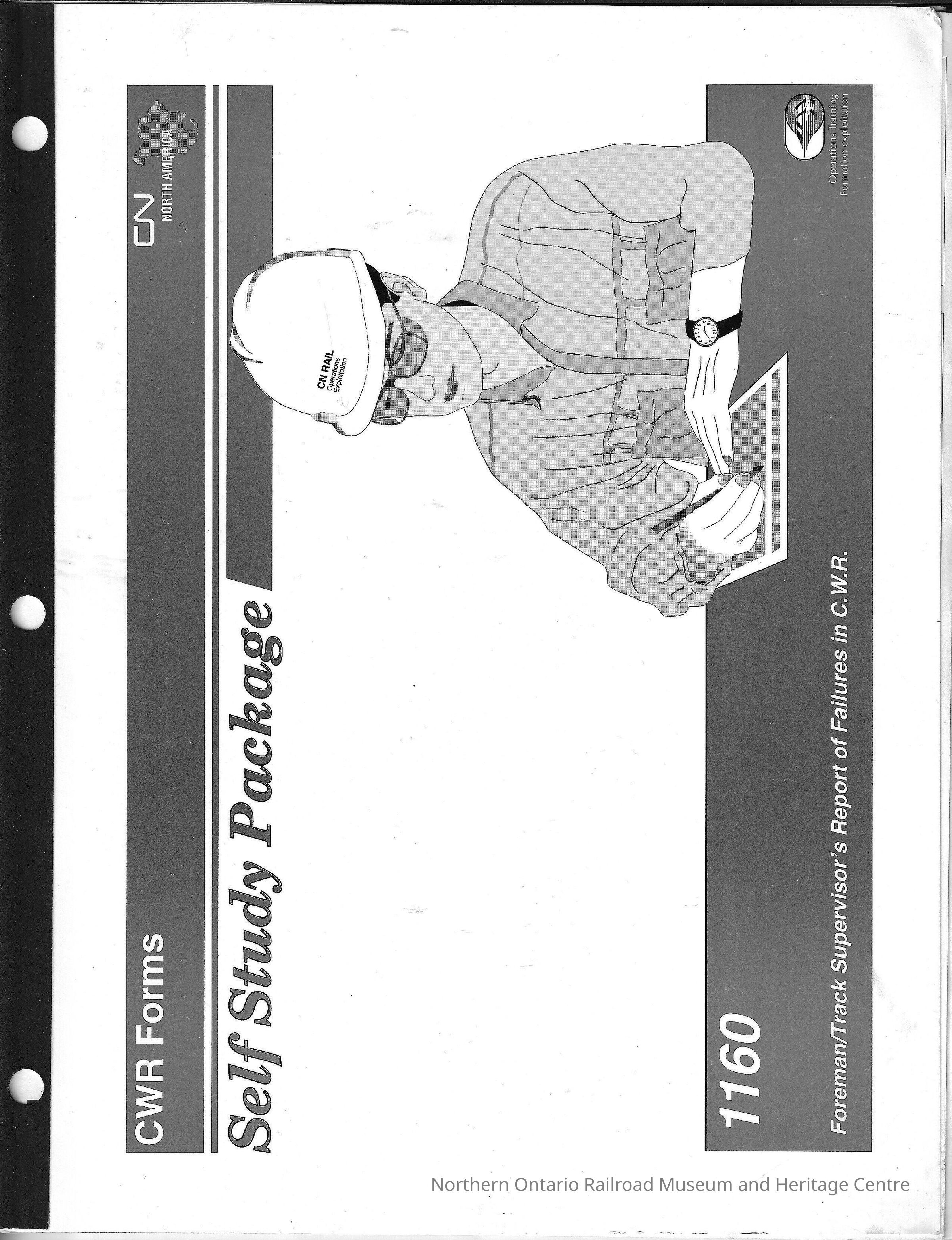 Book, training manual for Canadian National foremen and supervisors on continuous welded rails forms and reporting failures in continuous welded rails. It includes: step-by-step instructions on filling out the new revised 1160 forms, exercises to practice filling out the new forms, In the front cover there were also several "OSC Travel Expense Vouchers" one of which was filled out for Eric H. Parsons who was traveling from Montreal Quebec to Capreol Ontario. In addition to that form there was also a "Daily Living and Meal Allowance" form also for Eric Parsons who was staying in Guelph.