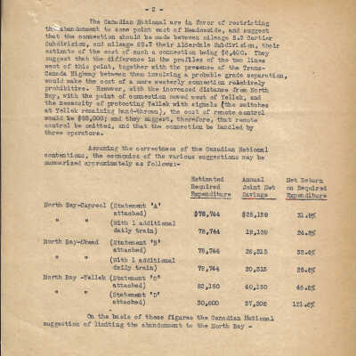 The letter is a copy of the original, and it discusses a Joint Committee report on the use of Canadian Pacific facilities at North Bay by Canadian National, for the possible use of the Canadian Pacific Line between North Bay and Coniston.