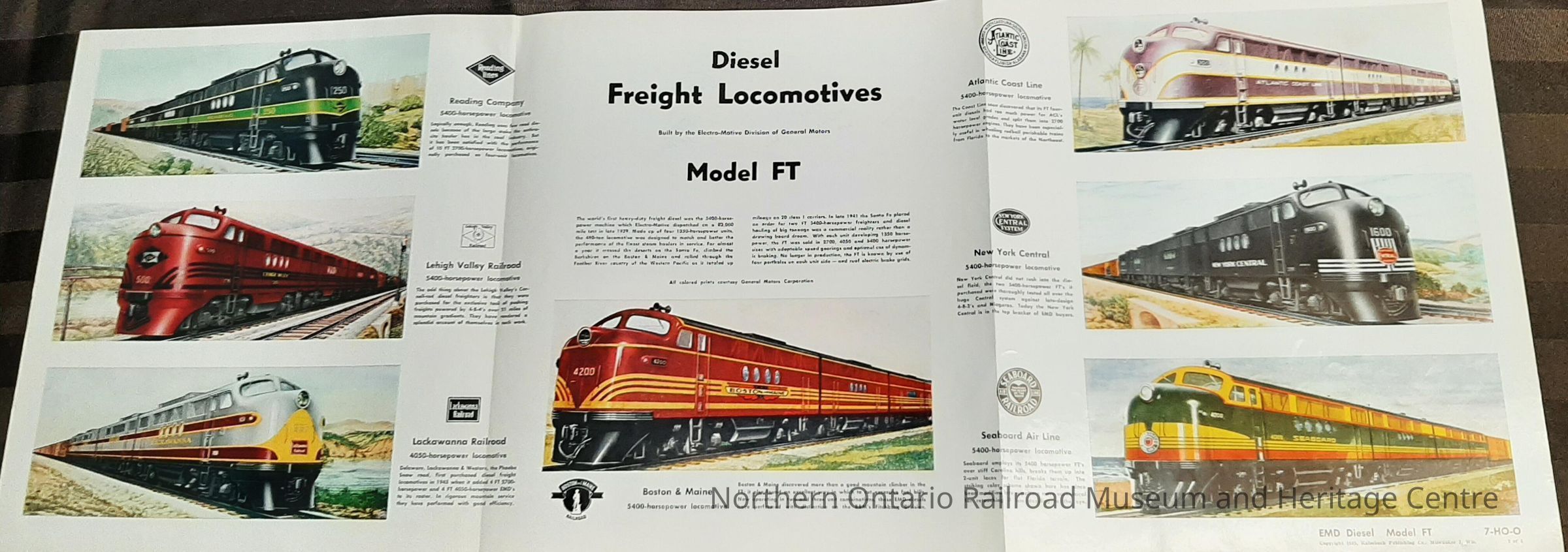 Original document, poster of major US railroad companies using the Model FT locomotive and their reason for switching to that locomotive type.Collection