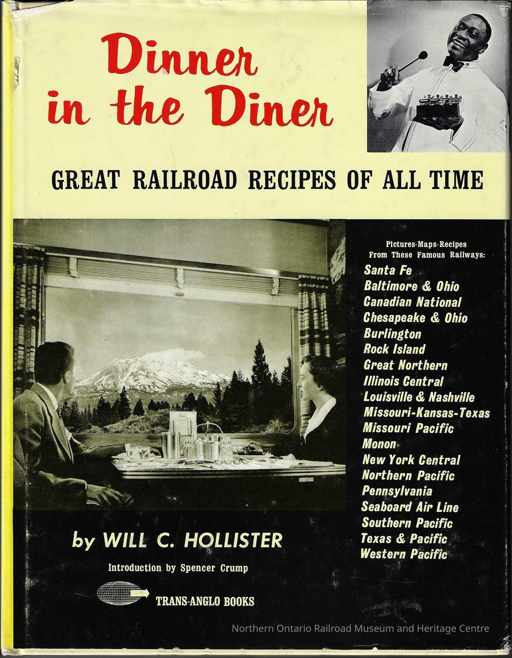 Book discussing common and famous recipes made in diner cars on board the major railway company's lines in the US and some in Canada. The recipes come from: Santa Fe, Baltimore and Ohio, Canadian National, Chesapeake and Ohio, Burlington, Rock Island, Great Northern, Illinois Central, Louisville and Nashville, Missouri-Kansas-Texas, Missouri Pacific, Monon, New York Central, Northern Pacific, Pennsylvania, Seaboard Air Line, Southern Pacific, Texas and Pacific, Western Pacific.