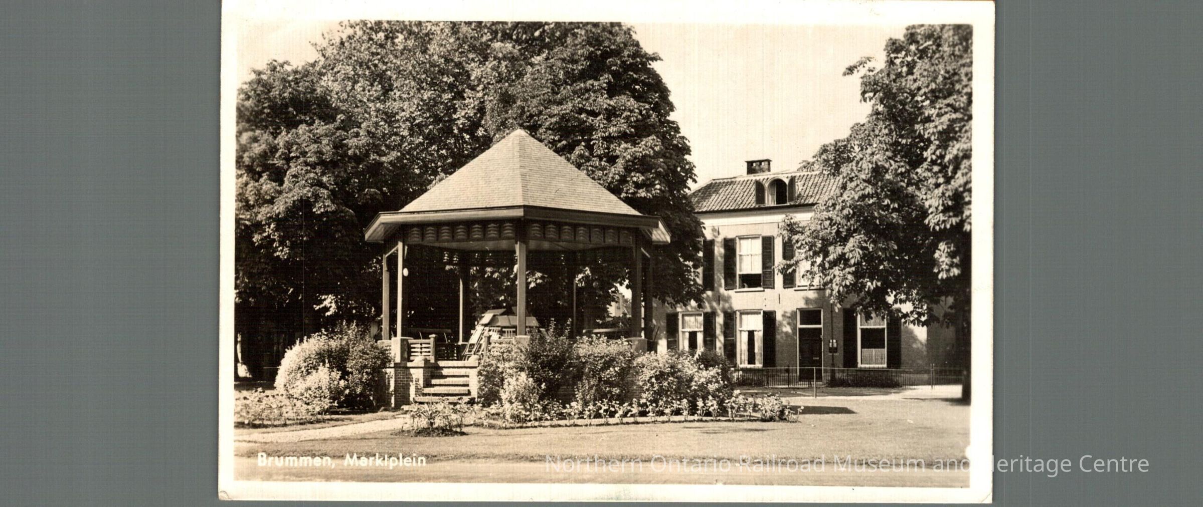 Postcard sent to Mr. and Mrs. M Carrise in Capreol ON from Brummen Netherlands in 1947. From momma and papa. Front image is of what appears to be a park or garden space captioned "Brummen, Merklplein."Context