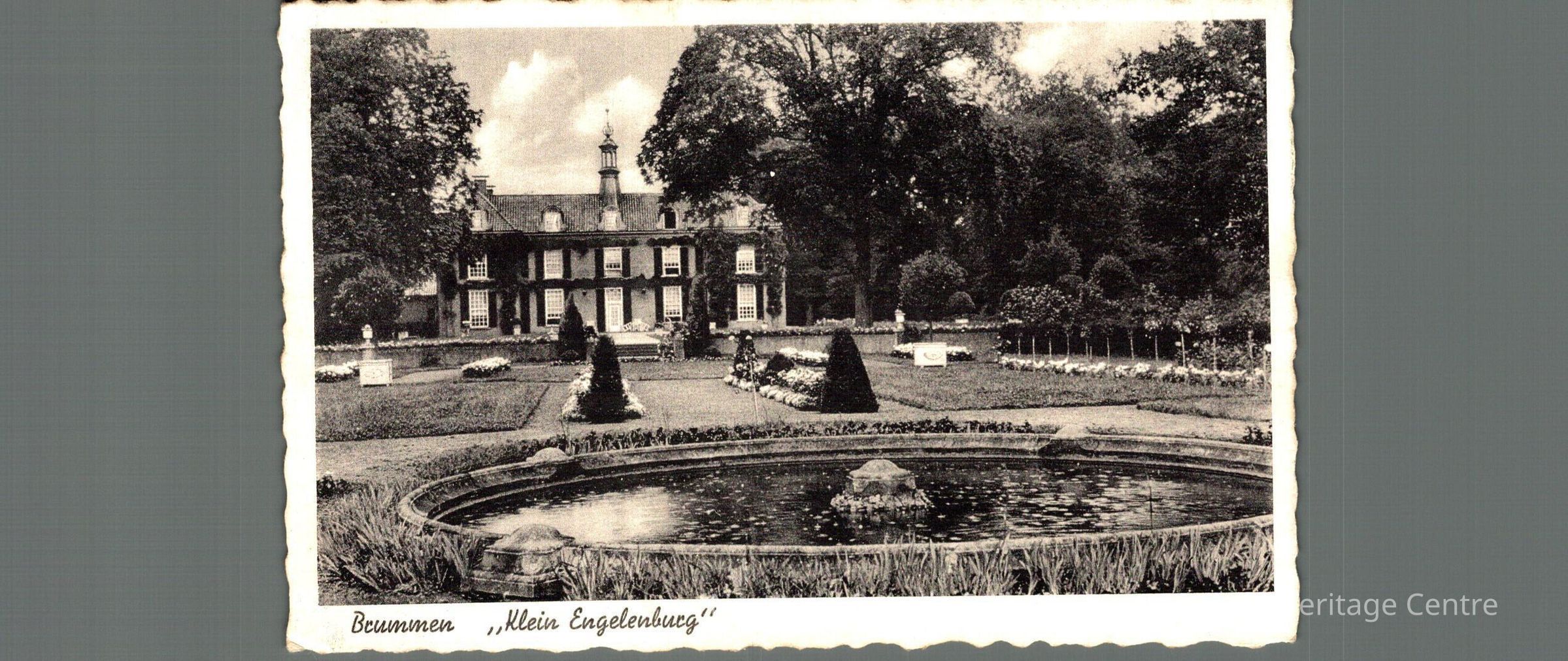 Postcard sent to Mr. and Mrs. M Carrise in Capreol ON from the Netherlands in 1947. Text is signatures, front image is of a garden in front of historic looking building. Captioned "Brummen, Klein Engelenburg"Context