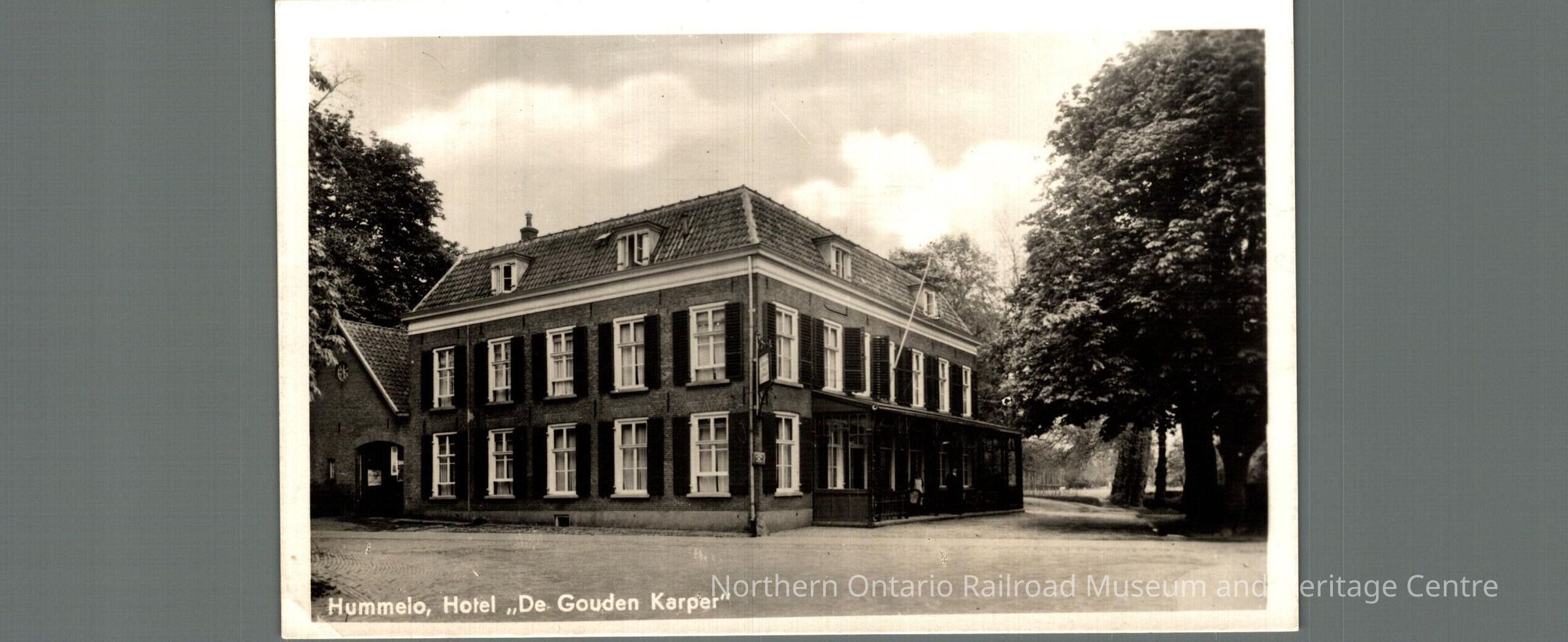Postcard sent to Mr. M Carrise in Capreol ON from the Netherlands in 1947. Text is signatures, front image is of a hotel building, captioned "Hummelo Hotel De Gouden Karper"Context