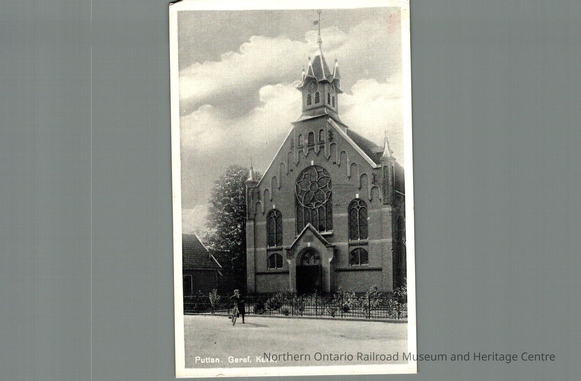 Postcard sent to Mr. and Mrs. M Carrise in Ottawa ON from the Netherlands in 1946. Text is in Dutch, front image is of a church captioned "Putten Geref Kerk"Context
