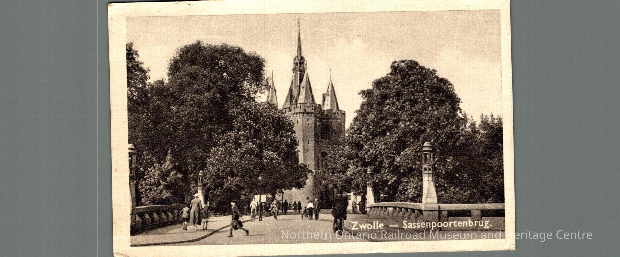Postcard sent to Ms. D Carrise in Ottawa ON from the Netherlands in 1946. Text is a signature, front image is of a city street/bridge captioned "Zwolle Sassenpoortenbrug"Context
