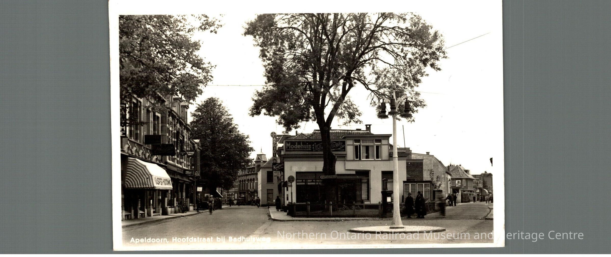 Postcard sent to Mrs. M Carrise in Capreol ON from the Netherlands in 1947. Signed with love from several family members. Front is an image of a cityscape captioned "Apeldoorn Hoofdstrat bij Badhuisweg."Context