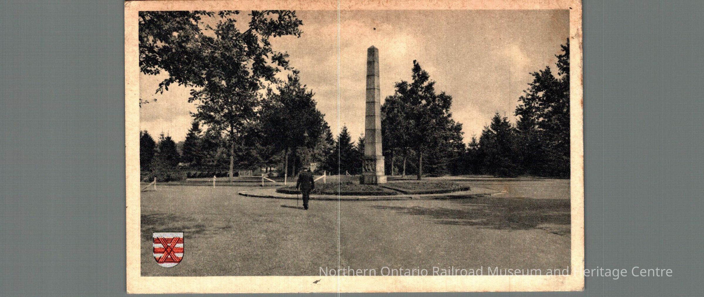 Postcard sent to Mr. and Mrs. Carrise in Capreol ON from the Netherlands sometime between 1946 and 1948 (second digits on the stamp are cut off). Text is in Dutch, front image is of a monument in a park captioned "Enschede Gedenknaald v. Heekpark"Context