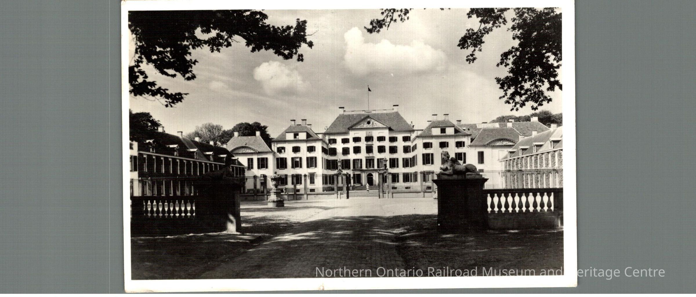 Postcard sent to Mrs. M Carrise in Ottawa ON from the Netherlands in 1946. Text is in Dutch, front image is of a large building, captioned "Apeldoorn Paleis Het Loo"Context