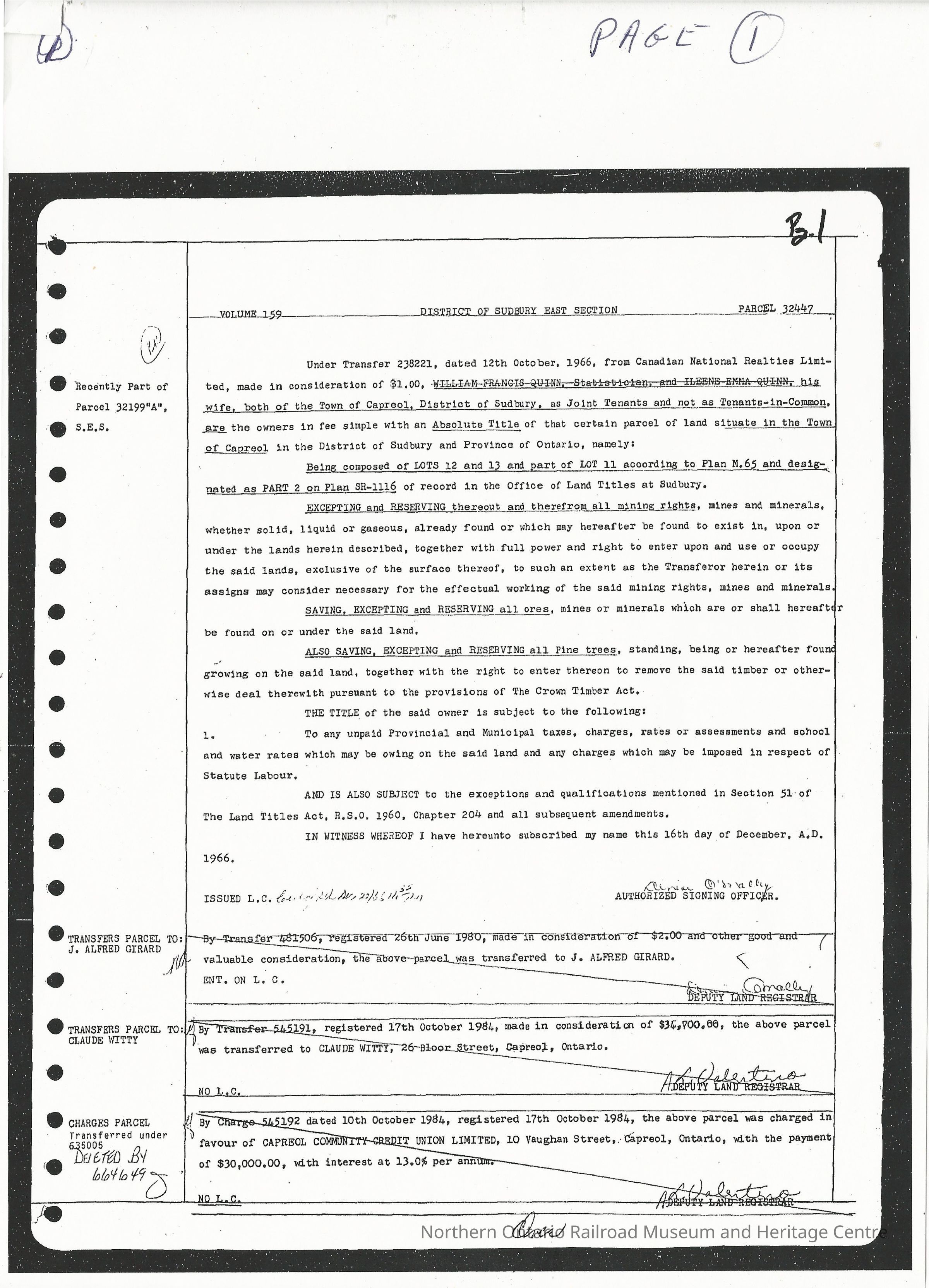 District of Sudbury East Section Lot PlanEntry/Object ID