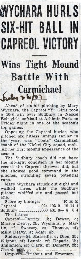Docoument, Wychara Hurls Six-Hit Ball in Capreol Victory.Collection