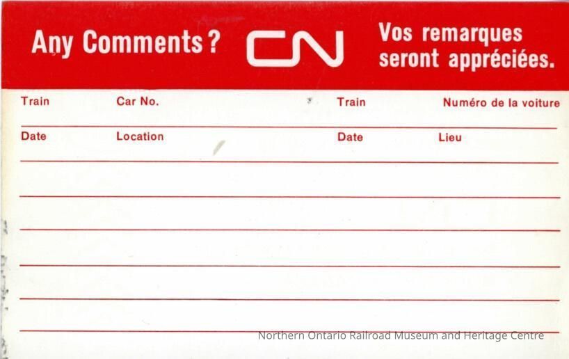 Document, Canadian National Railways Business Feedback Card, Blank.Collection