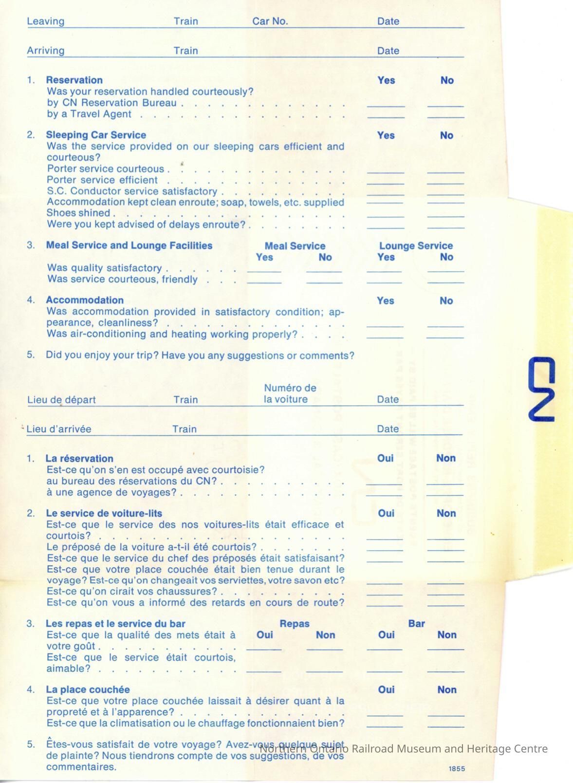 Document, Canadian National Railways, Business Feedback Form, Envelope.Collection