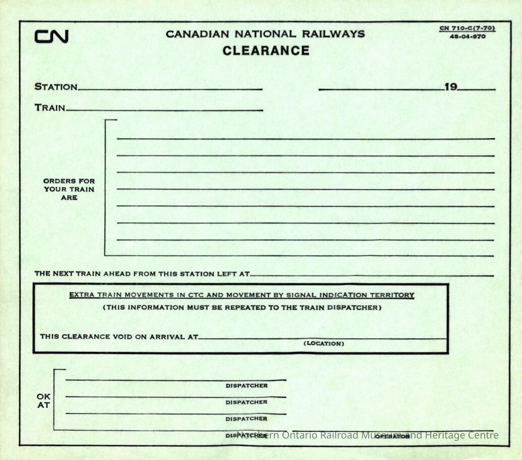 Document, Canadian National Railways Clearance, CN 710-C(7-70), Blank.Entry/Object ID