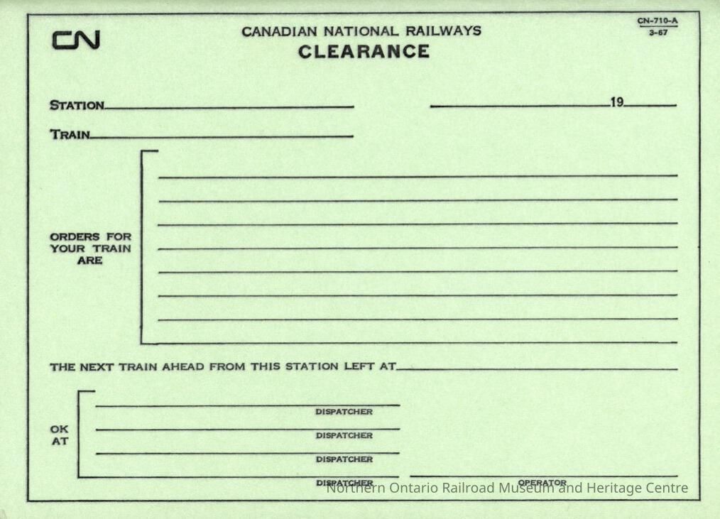 Document, Canadian National Railways Clearance Form, Blank.Entry/Object ID