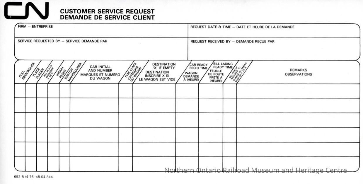 Document, Canadian National Railways, Customer Service Request.Entry/Object ID