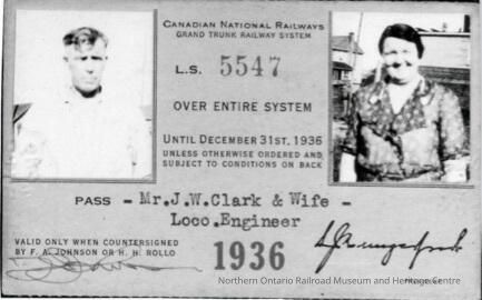 Document, Canadian National Railways Entire Pass, JW Clark and Wife, 1936.Collection