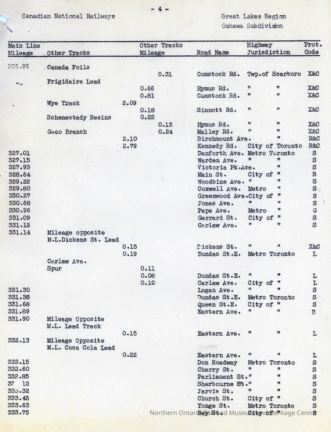 Document, Canadian National Railways, Great Lakes Region, Highway Crossing List.Collection
