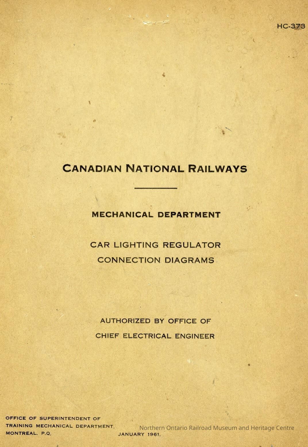 Document, Canadian National Railways, Mechanical Department, Car Lighting Regulator Connecting Diagrams.Collection