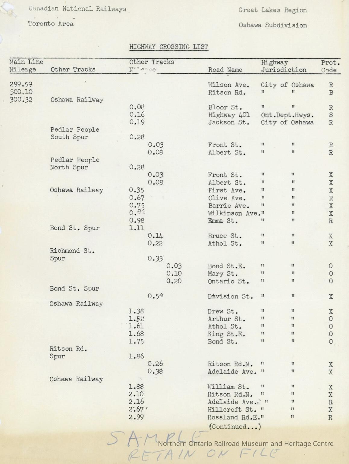 Document, Canadian National Railways, Toronto Area, Highway Crossing List.Collection