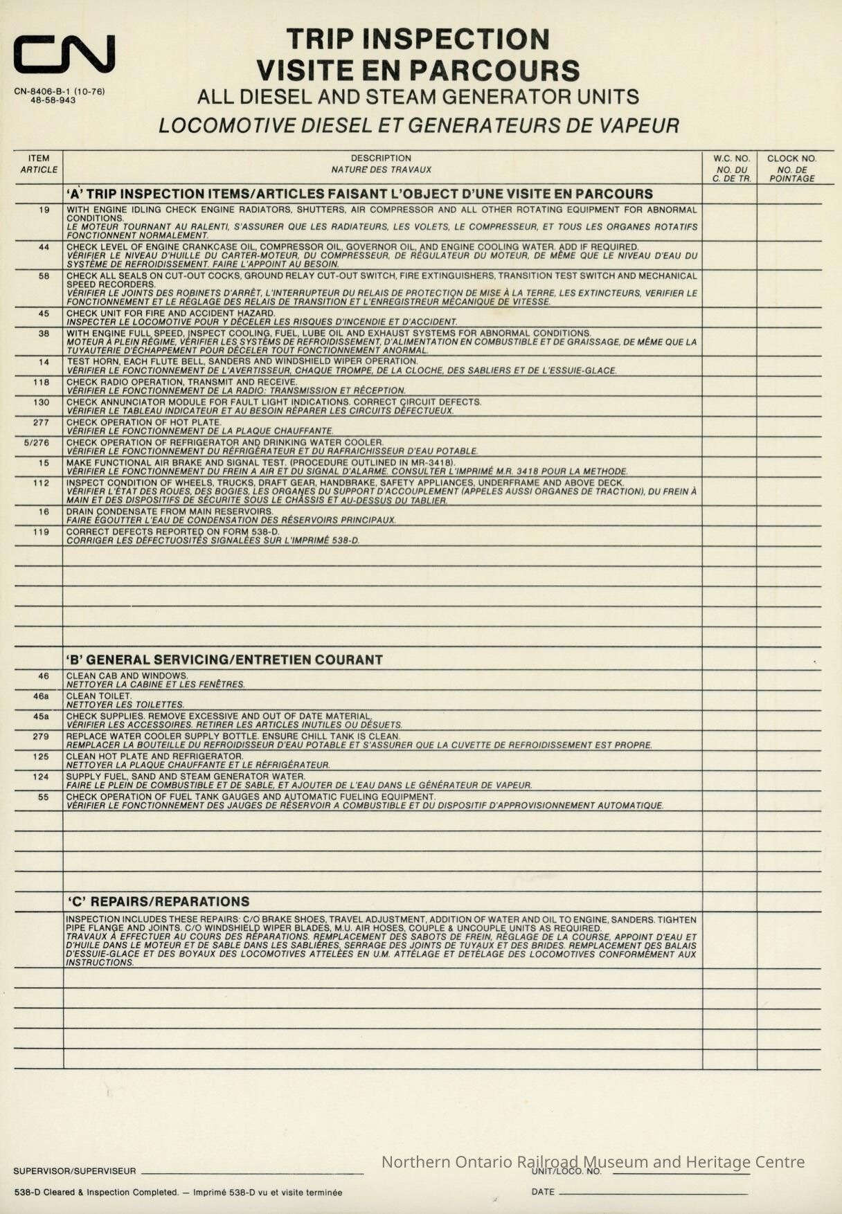 Document, CN Blank Trip Inspection.Collection