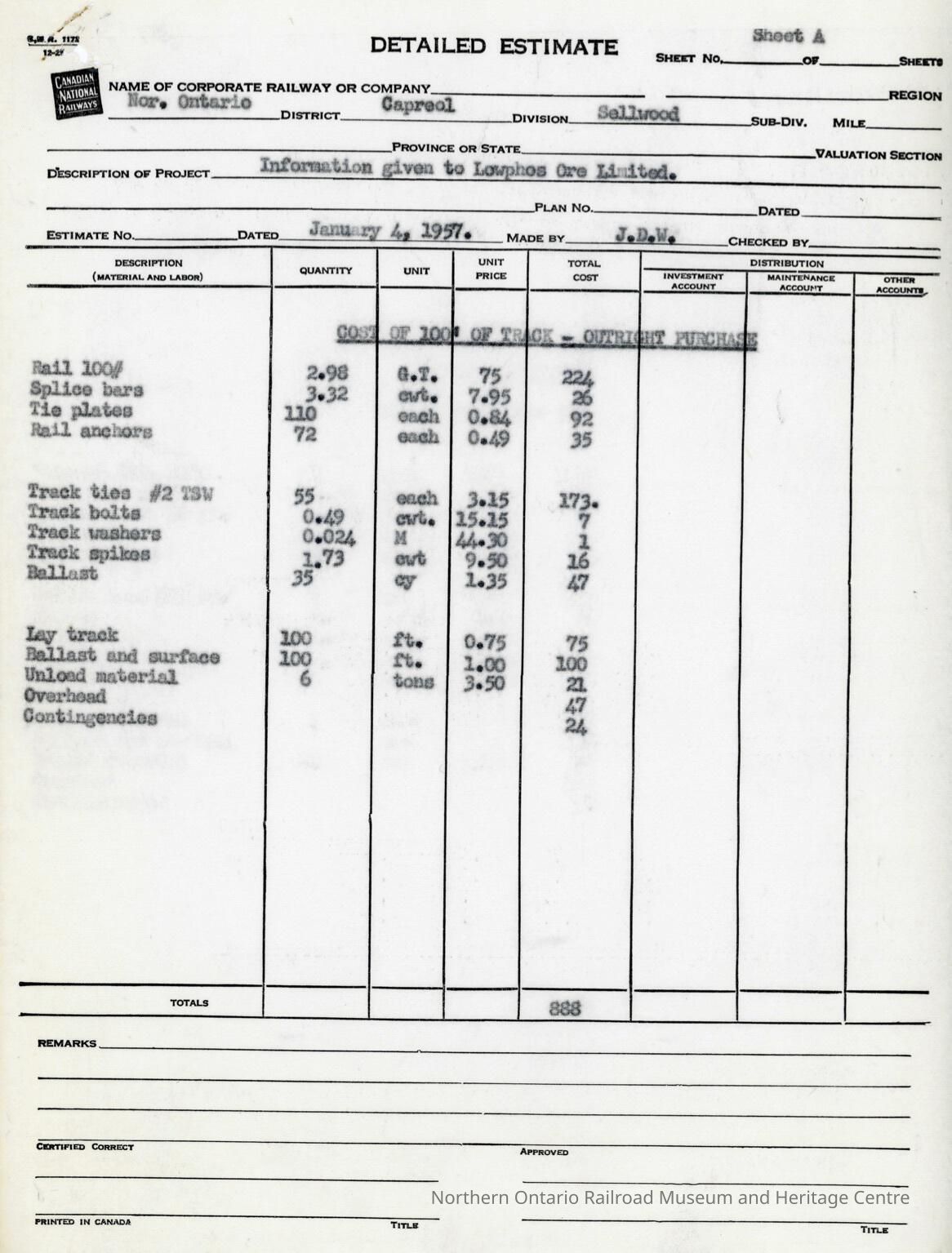 Document, CN Detailed Estaimate, Information Given to Lowphos Ore Limited.Collection