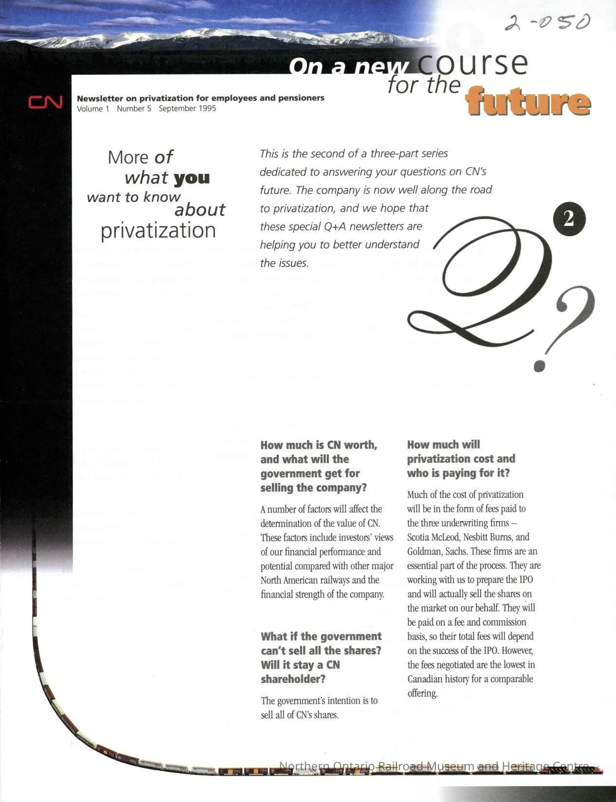 Document, CN Newsletter on Privatization for Employees and Pensioners, September 1995.Collection