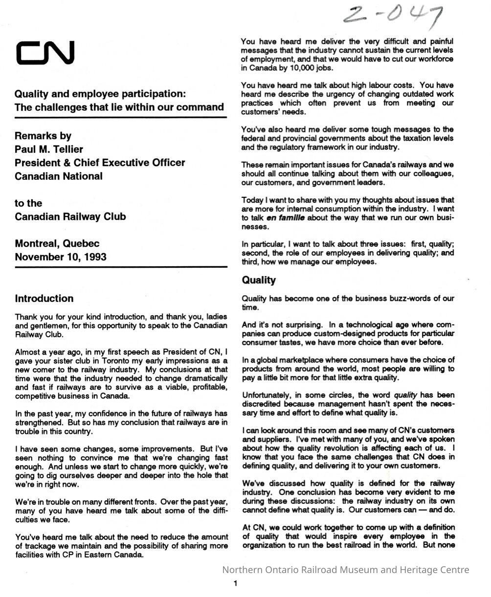 Document, CN Quality and Employee Participation, the Challenges that Lie Within our Command.Collection