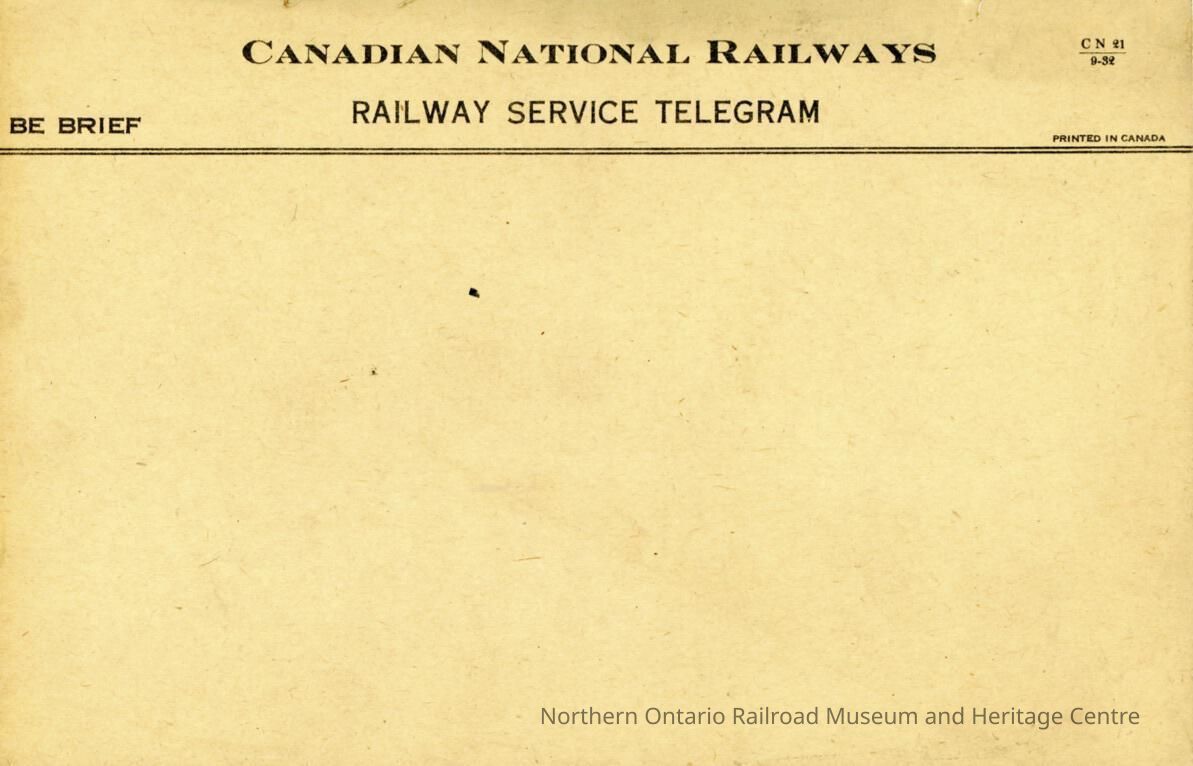 Document, CN Railway Service Telegram, Blank.Collection