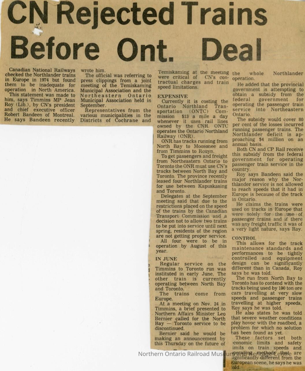 Document, CN Rejected Trains Before Ont Deal.Collection